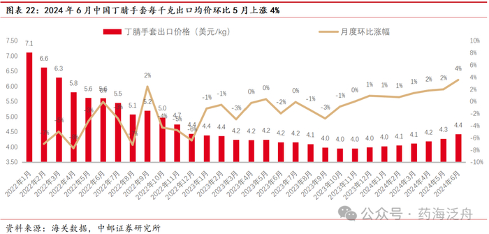 3.1 丁腈手套行业拐点已现,2024年6月我国出口量环比增长26%,出口均价环比上涨0.23美元
