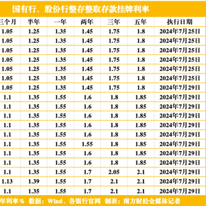 7月25日,工商银行等六大国有行同日公布最新人民币存款利率表,下调了各品种存款利率,由此拉开了此轮商业银行存款利率下调序幕。随着12家全国性股份制银行亦悉数完成调整,多家中小银行也于近期密集跟进调整存款挂牌利率。