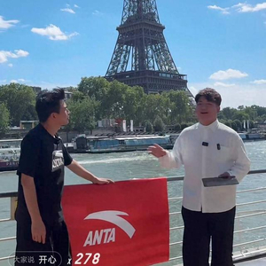北京时间8月8日晚间,法国巴黎塞纳河畔,奥运会跳水冠军全红婵哥哥全进华正用不甚熟练的话术直播推销运动服装。