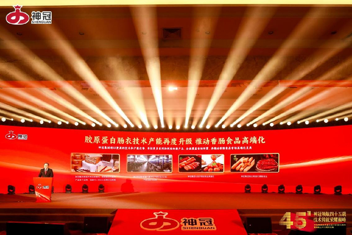 从1979年到2024年,神冠集团45年发展的开创性,不仅在于“胶原蛋白肠衣干法生产工艺、干湿混合法生产工艺、胶原蛋白提取连续生产模式、热空气能技术干燥肠衣”等领先世界的专利技术,更在于对下游产业的巨大推动作用。