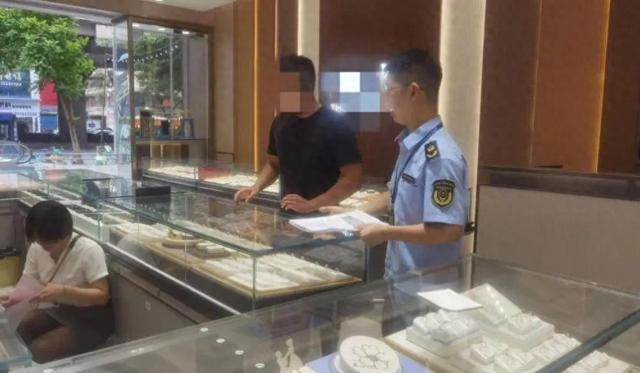 经执法人员检查,涉事商家待售的足金戒指、足金和田玉戒指等首饰标识牌上只有产品名称、价格等信息,却没有标注重量。结合现场检查情况及陈女士提供的证据,证实陈女士反映的问题属实。