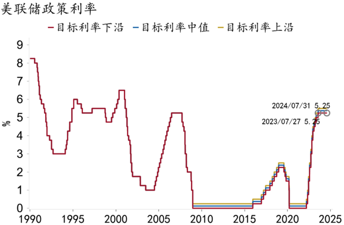 美联储:降还是不降,这是个问题长期以来,美联储在货币政策决策上一直遵循“数据依赖”,紧盯通胀与就业“双目标”,力求打造一条平滑的政策利率路径。然而,从历史上看,美联储政策利率路径却总是“急起急落”(图15),时常“落后于曲线”。陡峭的变化斜率有时源于判断失误,例如疫情冲击下美联储坚持“通胀暂时论”,直至通胀大幅上行,美联储才不得不“追赶曲线”,开启史上最快加息周期;有时则是由于危机爆发被迫而为之,例如次贷危机和新冠冲击爆发后,美联储均迅速施行了零利率政策。