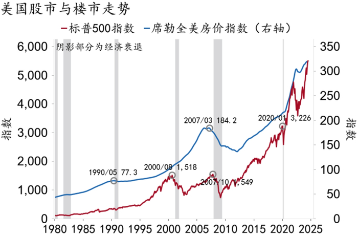 资料来源:Macrobond,招商银行研究院资本市场是美联储货币政策传导的重要途径。历史数据显示,加息往往导致资产价格下行,进而可能通过市场主体资产负债表与行为收缩引发经济衰退。