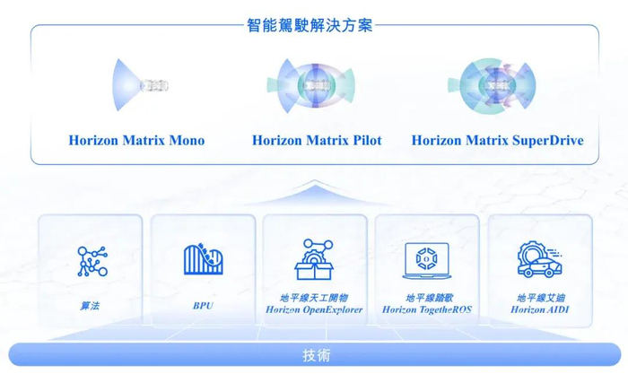 地平线提供全面高级辅助驾驶和高阶自动驾驶解决方案组合,即Horizon Matrix Mono、Horizon Matrix Pilot及Horizon Matrix SuperDrive,以满足客户从主流高级辅助驾驶到高阶自动驾驶的不同需求: