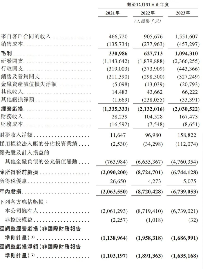 地平线2021年、2022年、2023年经调整亏损分别为11亿元、18.91亿元、16.35亿元。