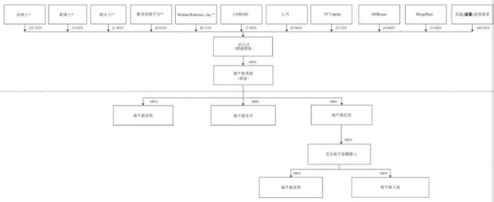 CARIAD持股2.38%,上汽持股9.06%,5YCapita(五源资本)持股5.72%;Hillhouse(高瓴)持股为4.04%, HongShan(红杉)持股为2.44%,WuCapital Limited持股为1.15%,有0.38%投票权;香港时代新能源科技有限公司持股为1.12%,有0.37%投票权;