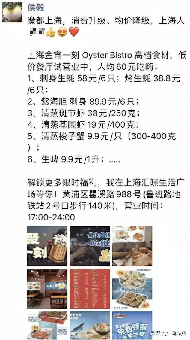 但“金宵一刻”被业内关注的时间点,却是在8月7日。侯毅在其个人朋友圈发布信息,包括餐厅的详细地址和特色产品。