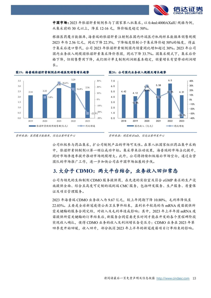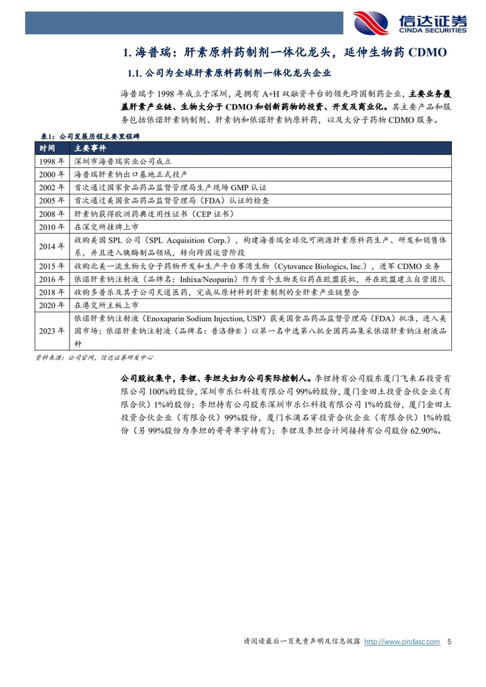 【信达医药】海普瑞(002399)公司首次覆盖报告:肝素原料药制剂一体化龙头,业绩有望企稳修复