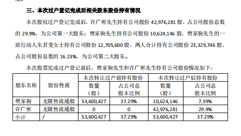许广彬确实顺利“买到壳”了。2021年2月,东方材料发布公告称,公司实际控制人樊家驹将所持公司29.9%股权转让给许广彬并完成过户。许广彬成为东方材料的实际控制人,而这笔交易转让价为7.63亿元。