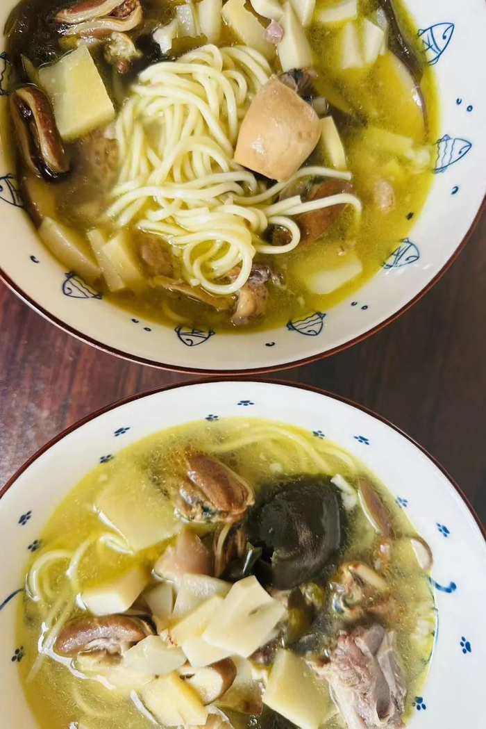 海味面多以剔骨肉熬汤,加入海味的干货食材,再佐以玉兰片,小火慢煨,素净,却鲜。当然,为了满足一部分人的荤腥之欲,也有人会在此基础上,加点儿五花肉片,厚油浓汤浇灌于一碗清水白面之上,鲜咸馥郁。