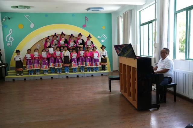 走进校园的音乐室,总辅导员顶争江初正在教孩子们唱一首叫做《钦如一嘉》的歌曲。顶争江初老师(上图右弹琴者)表示,这是一首由援滇干部作词的歌曲,他要通过这首歌曲,教会孩子要有一颗感恩的心。