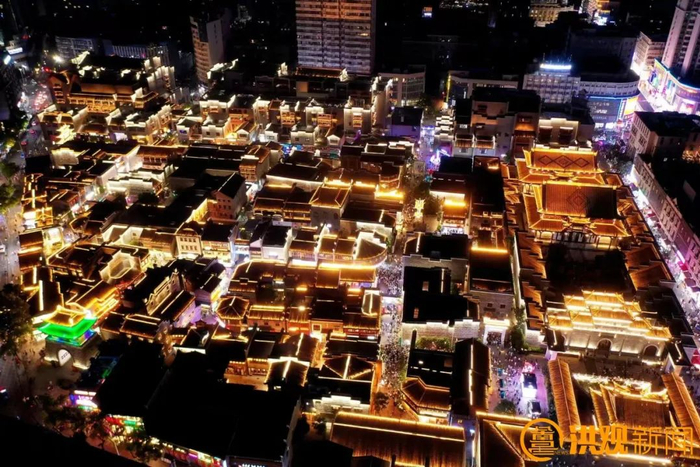 夜晚的万寿宫历史文化街区,更是别有一番风味。霓虹灯点亮老城的热情,各式小吃摊、手工艺品店、特色茶馆琳琅满目,游客们漫步古色古香的街道,或品尝地道美食,或挑选心仪的纪念品。