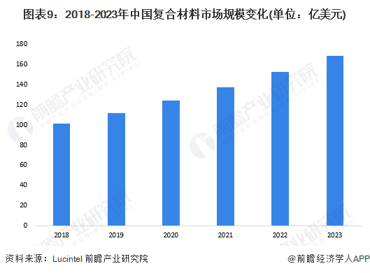 根据Lucintel的数据,近年来,随着新能源汽车、高端制造、军工等行业的快速发展,我国制造业对性能优良的复合材料的需求不断增加,进而对复合材料的发展形成了有利的推动作用,2023年市场规模已接近170亿美元。