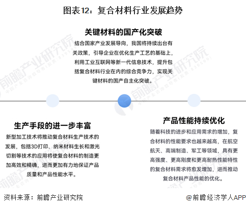 当前我国复合材料行业进入了国产化的关键阶段,结合国家在制造业、石油化工行业等领域的政策导向,在下游需求的推动下,我国复合材料的生产手段将进一步丰富,产品性能将持续得到优化。行业未来趋势具体分析如下: