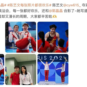 8月9日晚,巴黎奥运会跳水女子3米板决赛,中国选手陈艺文获冠军。赛后,她发博晒九图总结,把与郭晶晶的合照放在了中间。