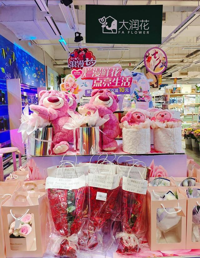 七夕节点来临,最为经典的鲜花也同样真香。大润大润发鲜花采购表示,“今年我们的礼品花性价比拉满,有花盒、花束、玩偶抱抱花束,从39.9元到199元,近10款样式、价格带齐全。”同期店内上市北极光、美人鱼、极光薄荷等厄瓜多尔同款复色玫瑰,售价仅为进口的1/4。更新鲜、更丰富、更低价,业务从品质、种类、价格层面不断升级,同时节日里高品质与创意的鲜花选择,也为线下超市场景选购增添更多惊喜与花样。