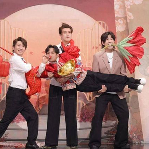 而“爆改男团”展现出一切从简的松弛感,宋小宝趴在地上演沙子,于洋和杨迪不断自我洗脑表示“还行”,许君聪则自嘲神似东方不败。到了第二张多巴胺男团风的照片拍摄时,时代少年团得到了来自对手的肯定,收获“几乎可以直接发表”“让人感到快乐”的超高评价,“爆改男团”却凭借出其不意的挡脸策略取得胜利。最后一张新中式风格,时代少年团加入撑油纸伞、打纸灯笼、撒红包等巧思,营造出满满的氛围感。“爆改男团”则找到舒适区,通过叼花、举酒盅、捧金元宝等操作,创造出异常喜庆的氛围。