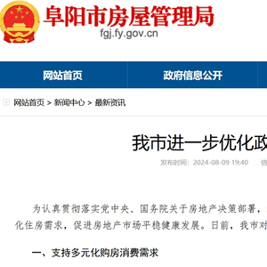 中新经纬8月10日电 据阜阳市房屋管理局官网消息,阜阳市9日发布《进一步优化政策措施促进房地产业高质量发展》,优化当前房地产政策措施。政策提出,鼓励房地产开发企业采取买房送家电、送装修、送车位、送旅游券、送购物券以及特价房等措施,开展营销。