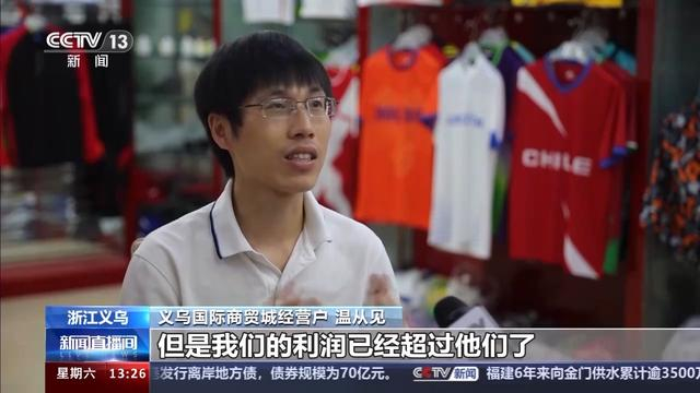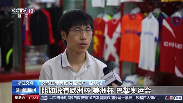 义乌国际商贸城经营户 温从见:今年因为是世界大赛年,比如说有欧洲杯、美洲杯、巴黎奥运会,差不多3月份开始,我们就已经着手开始接单、打样、生产这一系列的运动服饰。我们总共3个赛事下来销了30万件左右。