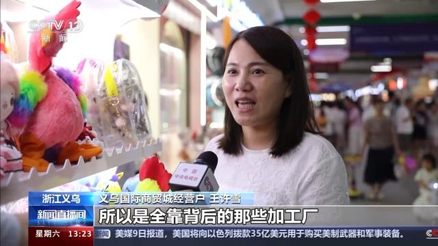 义乌国际商贸城经营户 王许雪:像我们背后都有100来家工厂给我们供应,所以是全靠背后的那些加工厂来支持我们,全国各地的都有。