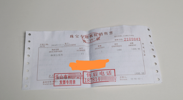 博主在乐山购买墨玉凭证