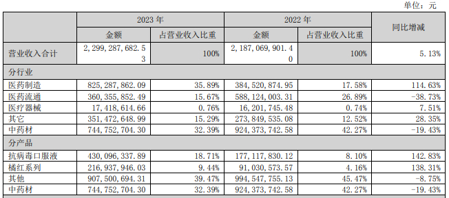 图4 | 香雪制药2023年营收结构