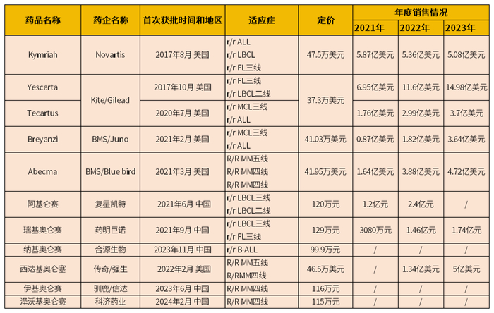 图1 | 全球获批上市的CAR-T产品