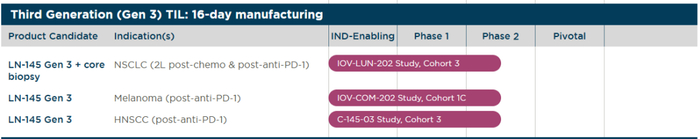 图2 | 第三代TIL产品LN-145 Gen 3管线