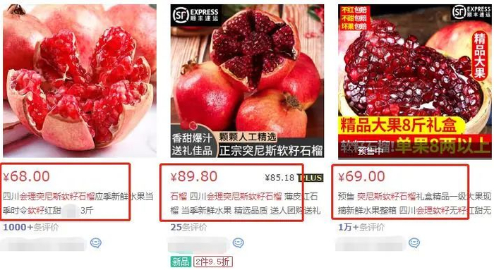 普通石榴的价格已经不低了,比起其他平台60多、80多的软籽石榴,我们这里价格却十分划算!