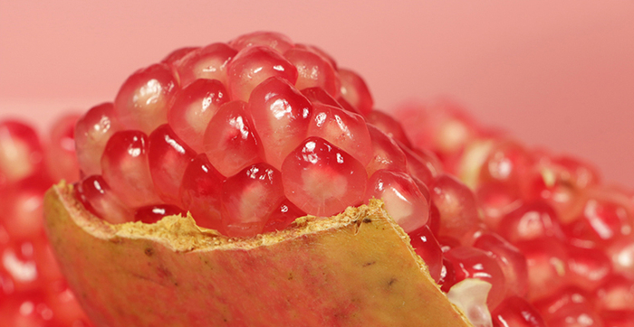 富含花青素,软籽石榴颗粒呈现明丽的红色,晶莹透亮、排列紧密,构成奇特的几何美,每颗都像是切割完美的红玛瑙。