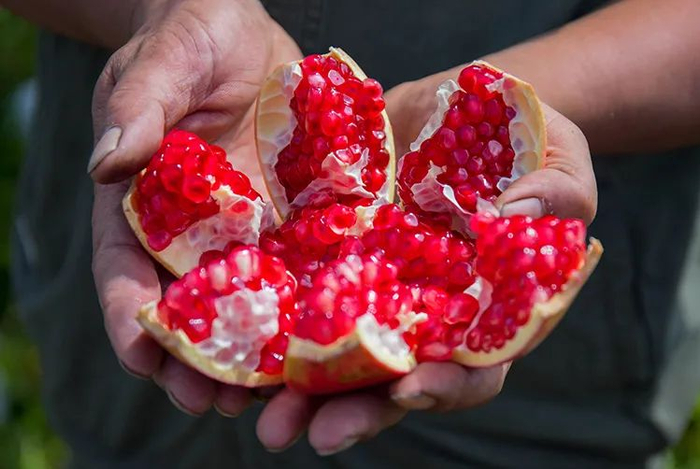 轻轻掰开一个突尼斯软籽石榴,它不仅皮薄、可以轻松剥食。