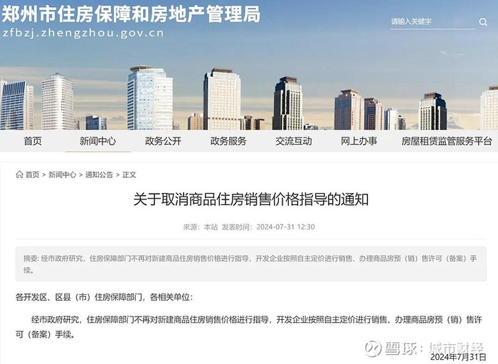近日,郑州市更是发布了《关于取消商品住房价格指导的通知》,直接取消了限价: