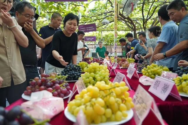 “葡萄品种太丰富了,有的酸甜可口,有的果香浓郁,好难选呀。”“这款葡萄有一股酒香,口感很特别。”金光、翠峰、桃太郎……品鉴会现场,43种中晚熟葡萄依次排开,葡萄串上果粒颗颗饱满、色泽鲜艳,吃起来的口感也各有特色。