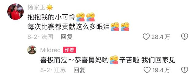 此次巴黎奥运会,她的妈妈湛正琼和启蒙教练刘振祥守在电视机前,在看到她夺冠那一刻时喜极而泣。