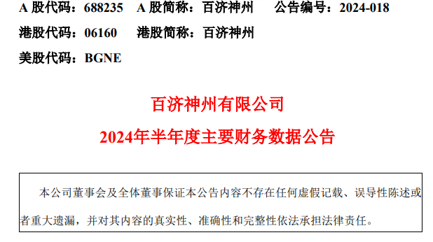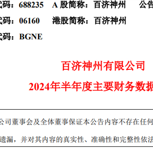 2024年8月7日晚间,在美股、港股、A股三地上市的百济神州披露了其2024年第二季度、半年度业绩数据。