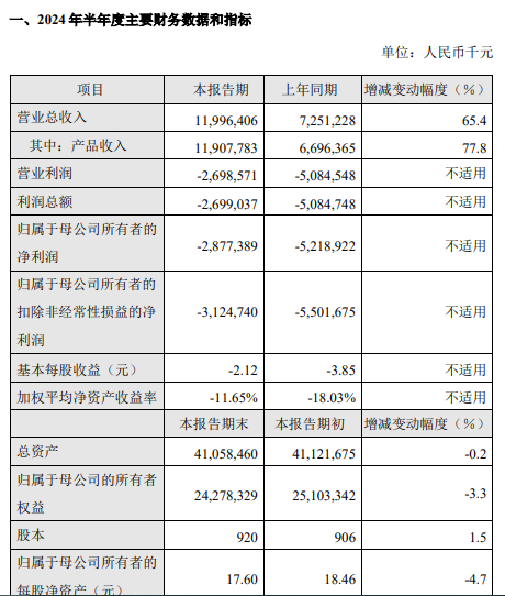 总的来说,按照中国企业会计准则,百济神州2024上半年实现总收入119.96亿元,同比增长65.4%。归母净利润延续2023年亏损收窄势头,上半年净亏损28.77亿元,同比减亏约23.42亿元。