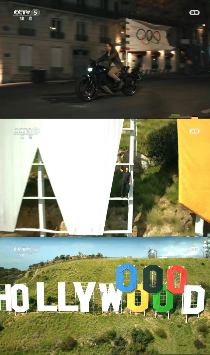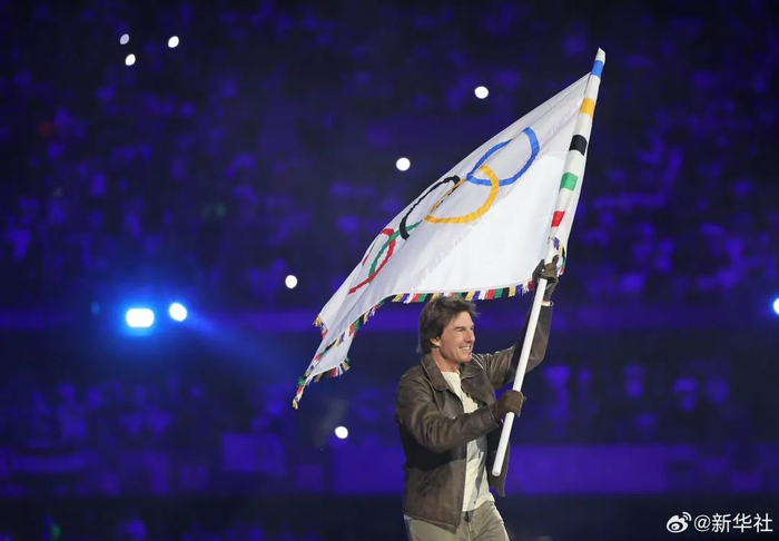 好莱坞明星,62岁的汤姆·克鲁斯从法兰西体育馆飞身而下的场景则点燃全场,如神兵天降般重现《碟中谍》经典画面的他取走了奥林匹克会旗,并骑上摩托车带它穿越巴黎街头。