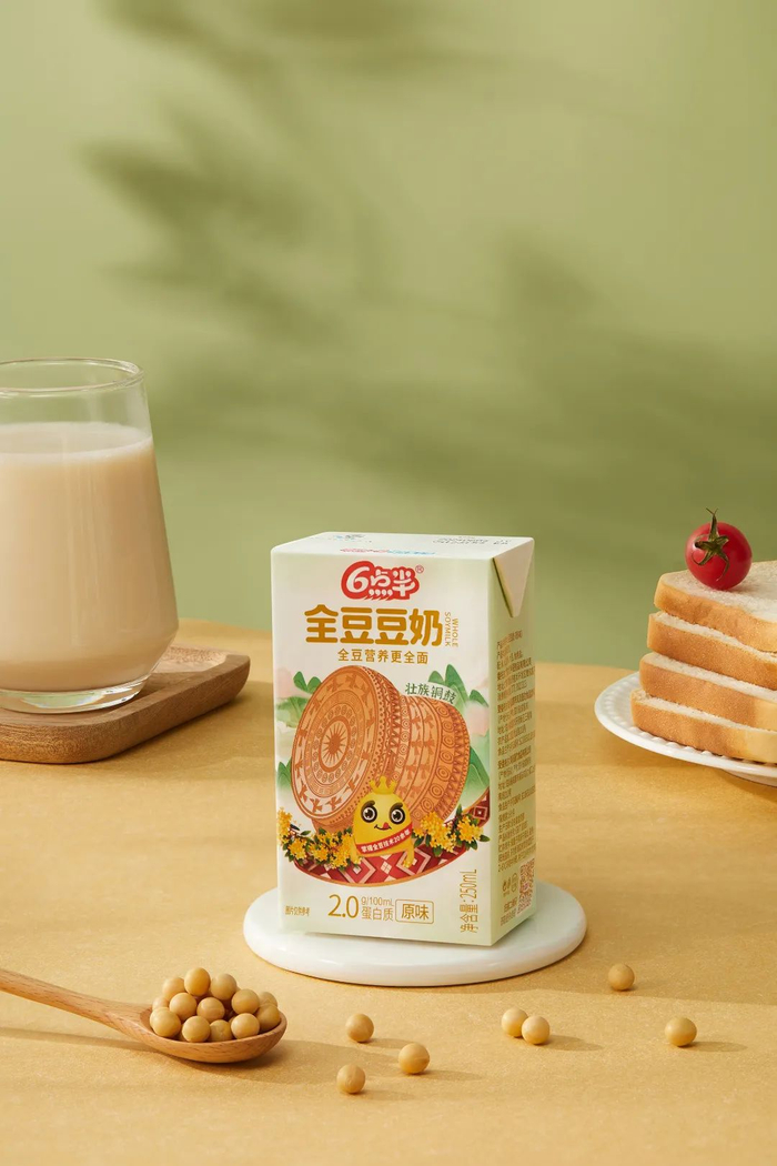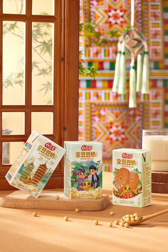 2024年,“六点半”在产品包装设计上将广西特色的风土人情与现代审美无缝对接,让每一瓶豆奶都成为传递广西文化的使者。