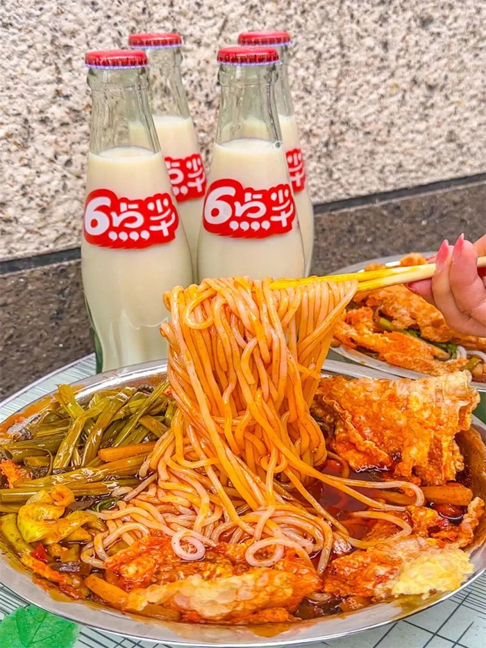 螺蛳粉香辣上头,6点半豆奶解辣解腻解渴,“粉+6点半豆奶”是广西人饮食特色搭配之一。