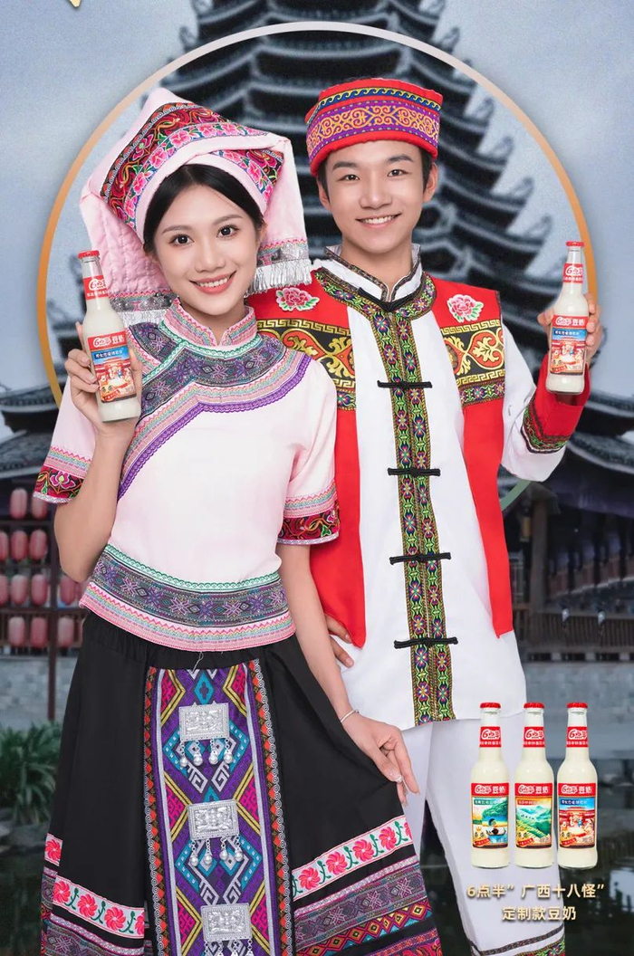 从“象鼻饮水山叠彩”的奇趣景象,到“稻谷种到云天外”的田园风光;从“男女恋爱摆歌台”的民俗风情,到“桂林山水甲天下”的壮丽“双子塔”景观;再到河池铜鼓之乡的古老回响,以及靖西壮族绣球的精美绝伦……这些丰富多彩的广西文化符号,被巧妙地融入包装之中,让每一位品尝到它的消费者,都能感受到来自广西的温暖与亲切,形成“吃广西特色美食,喝广西特色豆奶”的特色文化体验氛围。