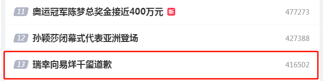 8月12日,“瑞幸向易烊千玺道歉”词条登上微博热搜。