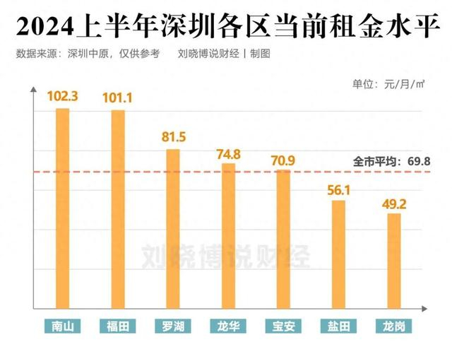 数据显示,福田、南山核心区的租金水平高出非核心区36%-107%,优势明显。