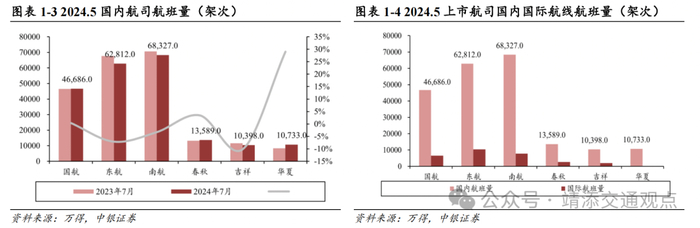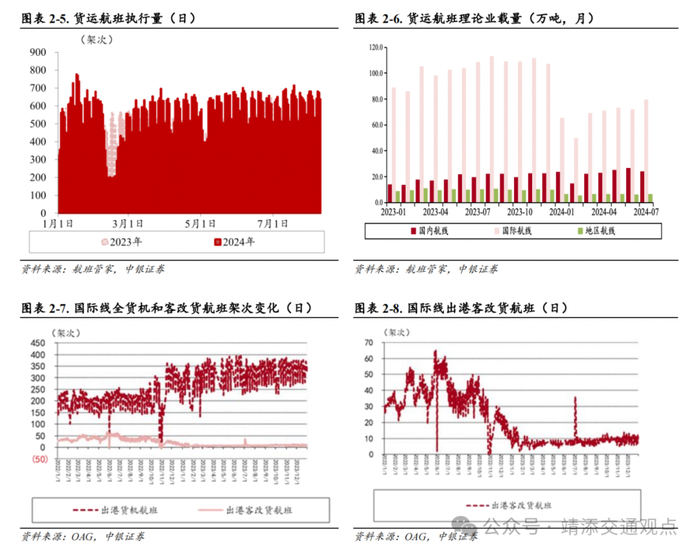 2.1.2 量:2024年7月货运执飞航班量国内航线同比上升,国际航线同比上升