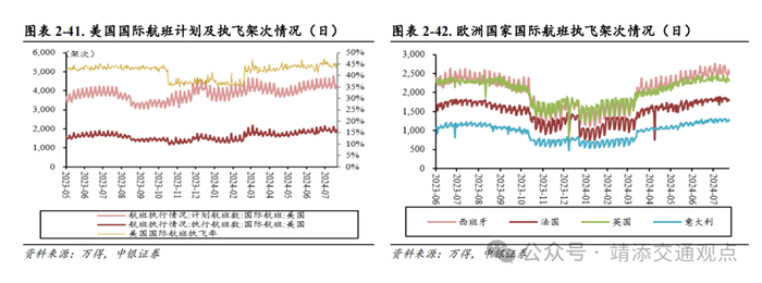 本周(8月3日至8月9日)美国国际航班日均执飞航班1952.14架次,周环比+2.34%,同比+13.74%。