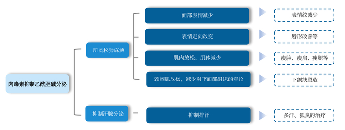 2002年4月15日,美国药监局批准肉毒素用作医学美容材料,主要用于注射除皱,暂时性改善中度至重度的眉间皱纹。随着技术不断发展,机构对肉毒素的研究不断深入,肉毒素的适应症以及应用领域不断拓展。目前,除减少表情纹(如抬头纹、法令纹等)外,肉毒素还可用于瘦脸/瘦肩/瘦腿、改善唇形、塑造下颌线、抑制汗腺分泌、治疗多汗及狐臭等。