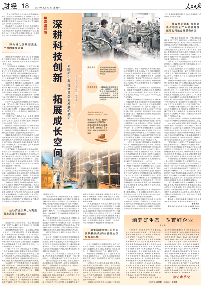 最近,人民日报记者走进部分瞪羚、独角兽企业,以整版篇幅深度观察它们如何深耕科技创新主赛道、拓展高质量发展新空间,一起探讨如何有力有效支持发展瞪羚企业、独角兽企业。