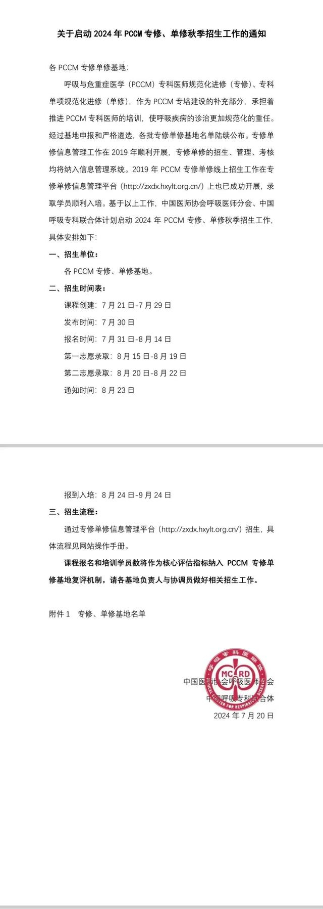 2024年瑞金医院PCCM专修、单修秋季招生通知