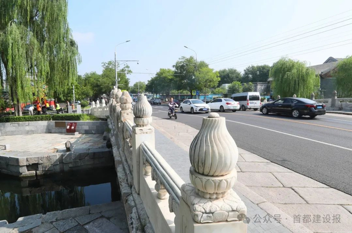据市交通委城养中心工程管理高级工程师臧宏阳介绍,中轴线上的万宁桥自古以来具备突出的交通功能,桥面上是城市道路,地安门外大街南北贯穿,桥下运河东西流过,曾经通行运输货物的漕船,是京城的交通枢纽,更是至今仍然在役的古石桥,道路通行需求与历史文化名城保护在修缮工程中被赋予了同等重要的地位。