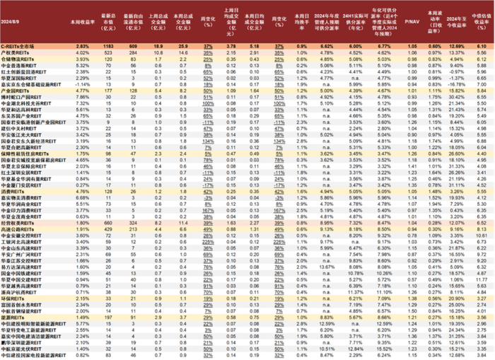 图表2:8月5日至8月9日C-REITs市场情况