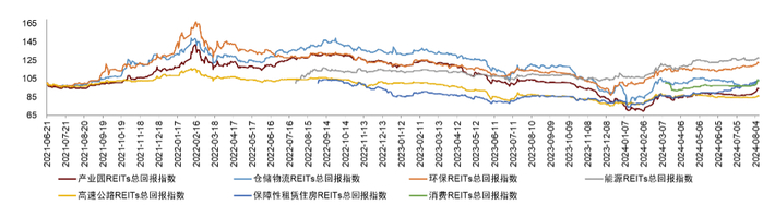图表4:各板块REITs总回报走势